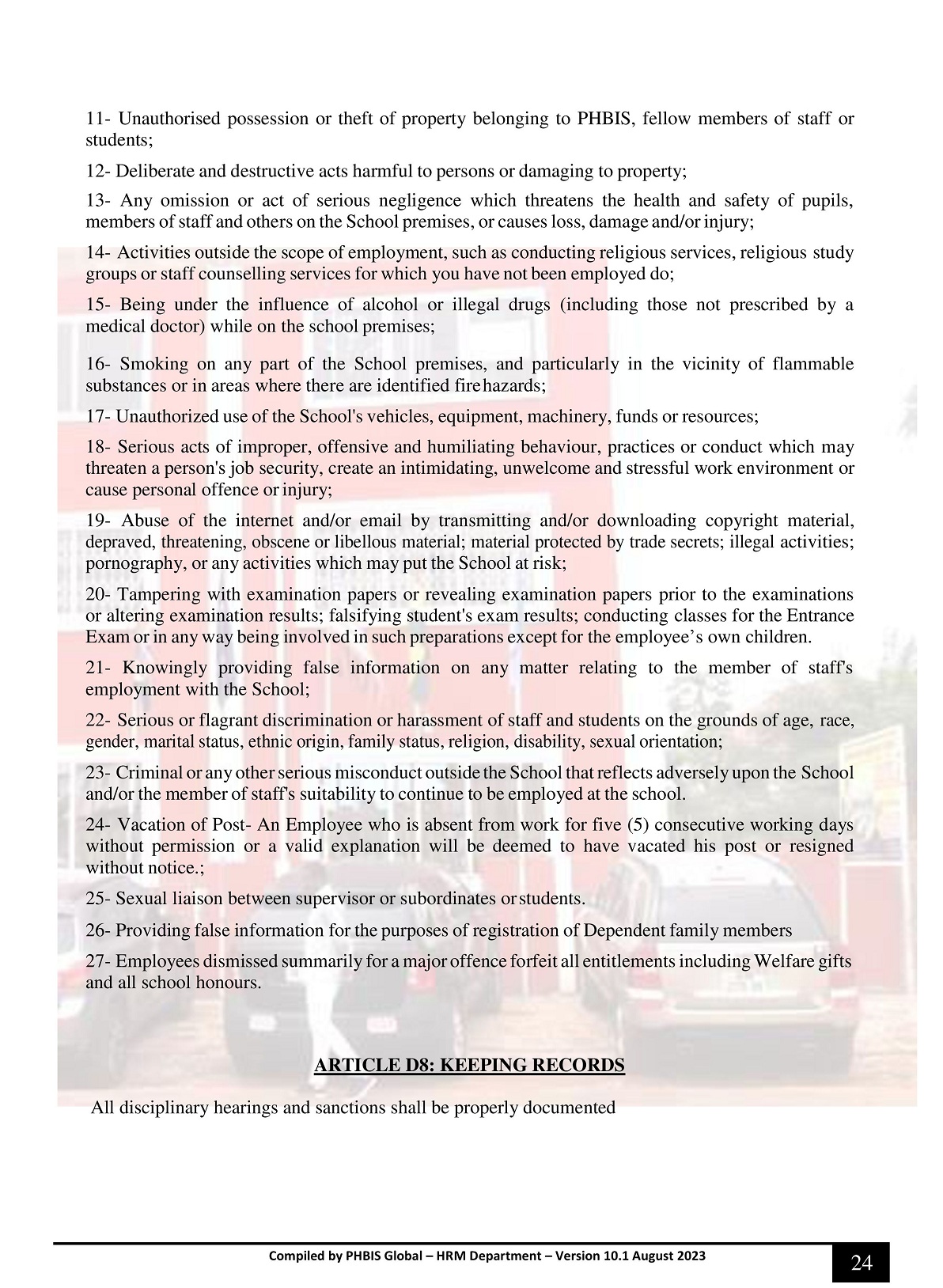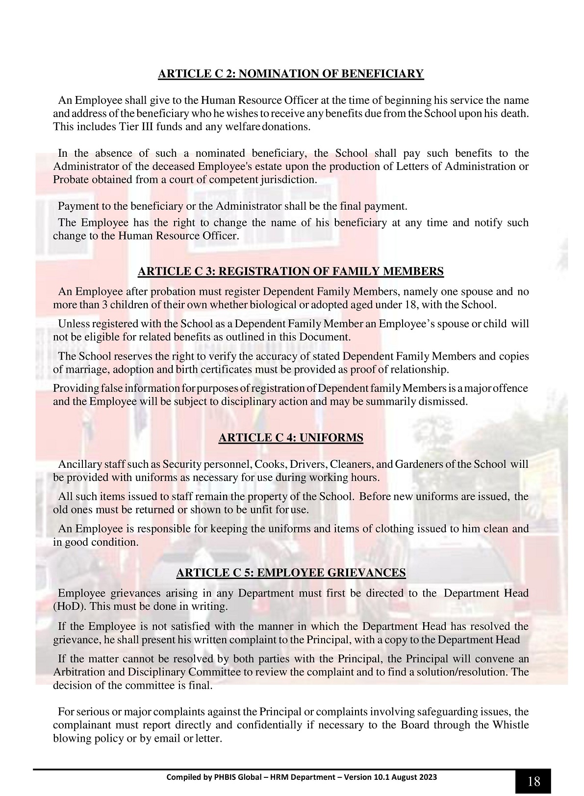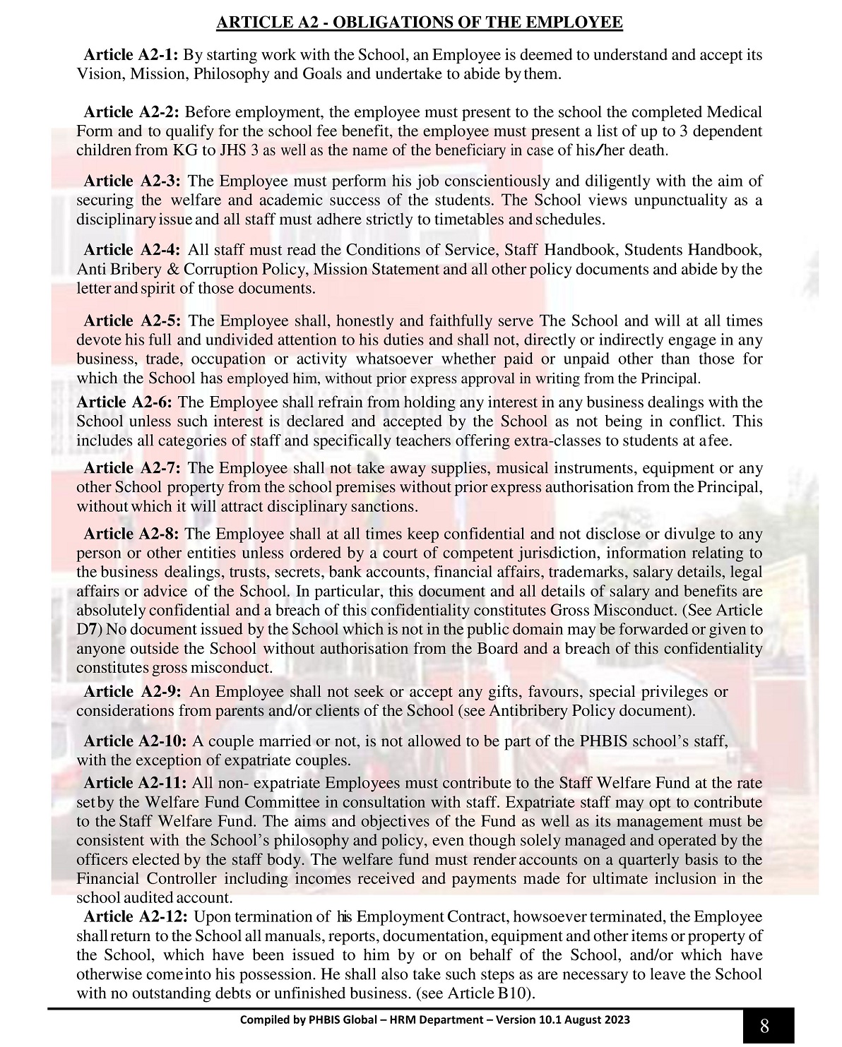 All PHBIS staff must read this General Policy,and abide by its letter and spirit.